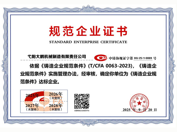 • 09-28弋陽大鵬機械制造有限責任公司成功取得規范